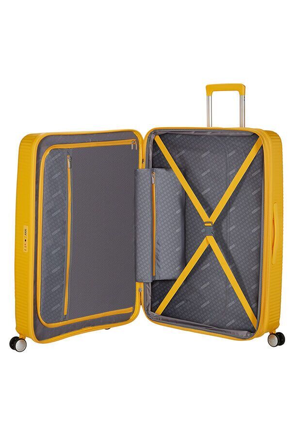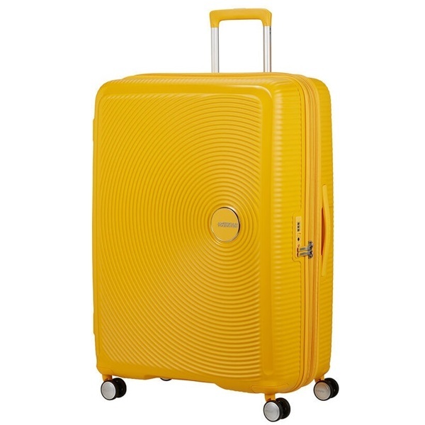 - Первый полипропиленовый чемодан на молнии бренда American Tourister с функцией дополнительного расширения